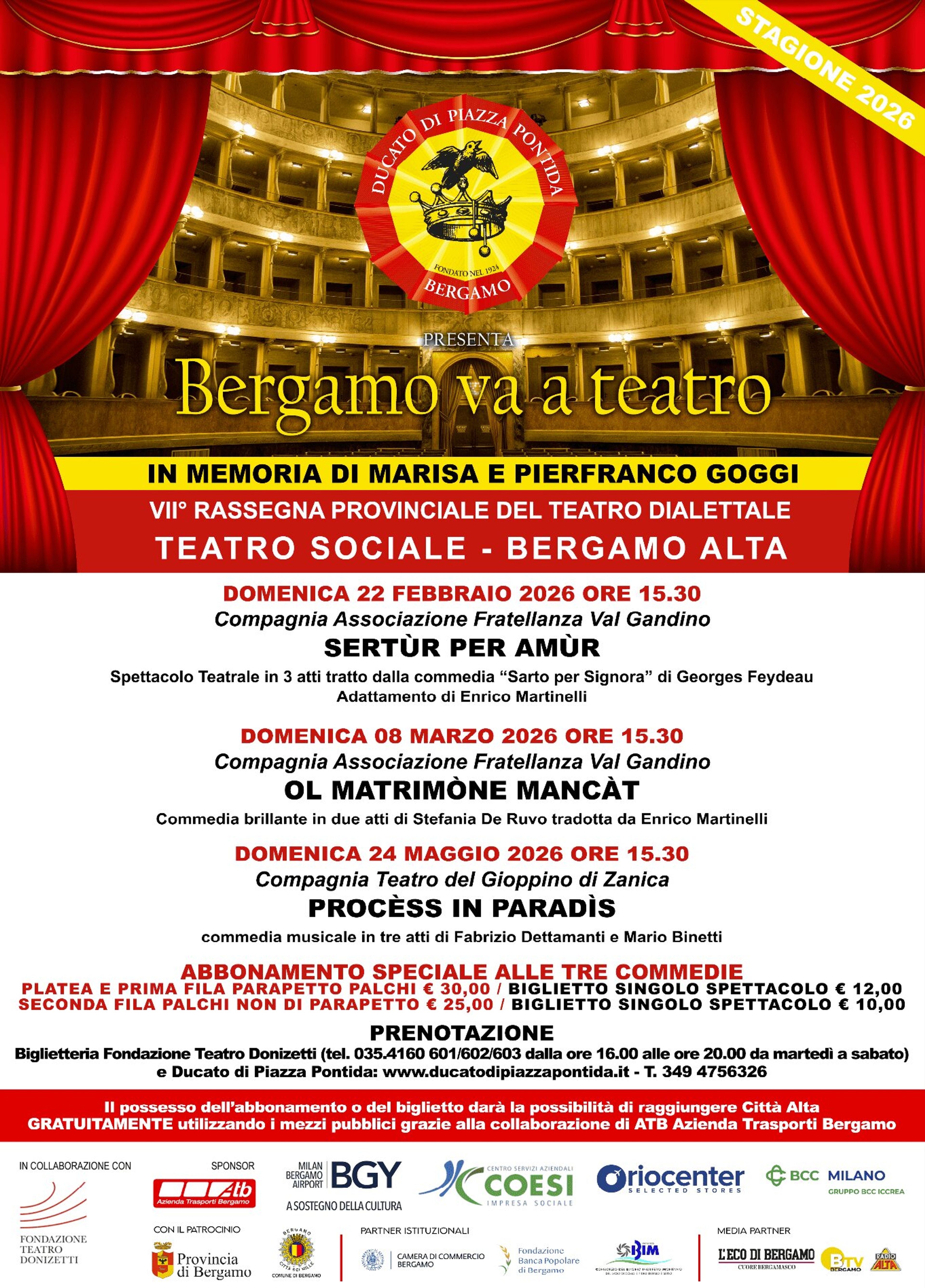 Abbonamento 3 Spettacoli Rassegna Dialettale “Bergamo va a teatro” 2026
